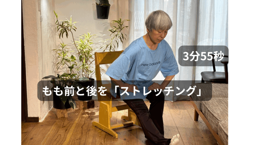 今日はももの前と後ろの ストレッチングを お届けいたします。 しなやかな筋肉は、 ケガの予防にも効果的です。 元気に動きたくない日にも、 ストレッチングは、 身体も気持ちもすっきりさせます。