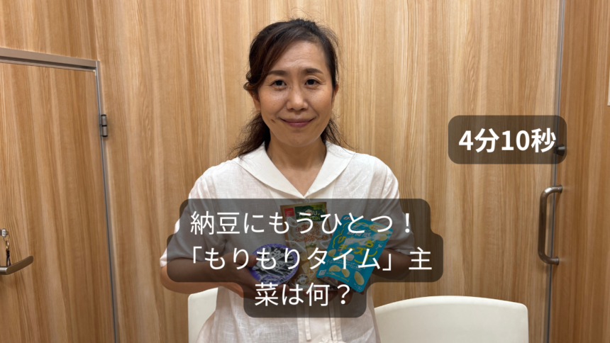 フレイルトレーナーの モーリンです。 金曜日は、栄養とお口のトレーニング! もりもりタイム・主菜は何?を お届けいたします。 今日は、たんぱく質が入っているのが、 納豆だけ。。。。。。。