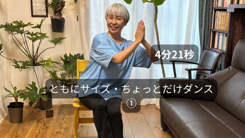 おはようございます。 フレイルトレーナーの モーリンです。 今日は、有酸素運動と 脳トレを組み合わせたプログラム、 「ともにサイズ」です。 いつもの 椅子に座って足踏みではなく、 サイドステップを踏む、 ちょっとだけダンス①です。 お楽しんでいただけると嬉しいです♡ それでは、どうぞ~